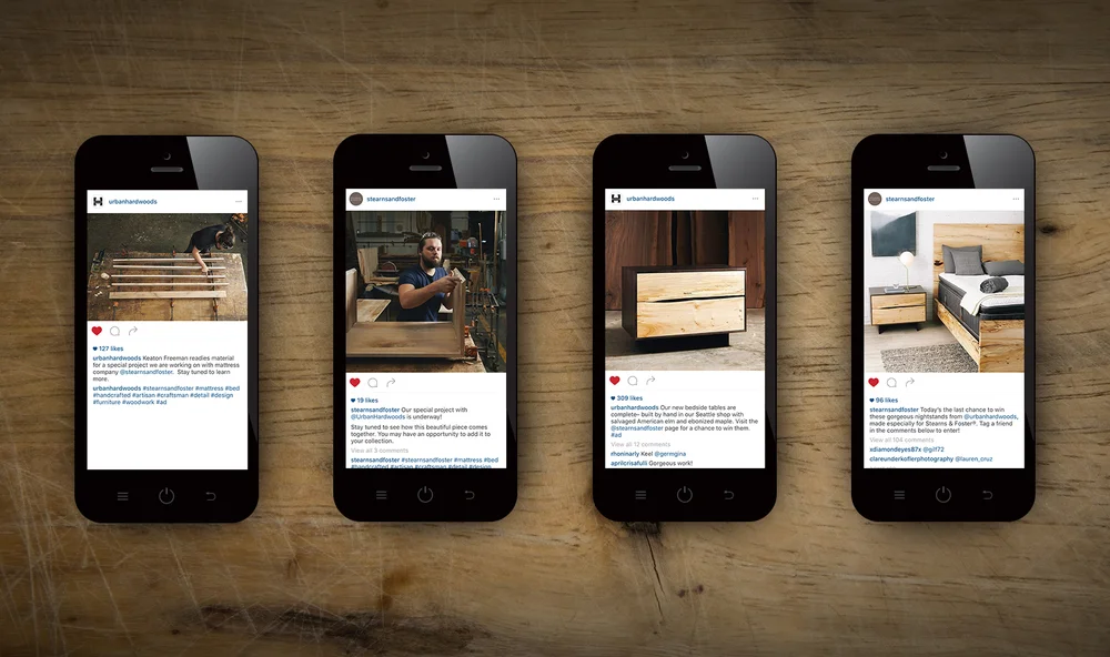 In 2015, Stearns & Foster finally dipped their toes in Instagram. To extend their brand story across a new platform, we created the Curated Craftsmen campaign, showcasing profiles and insights of master craftsmen at work across the country. To launch the campaign, we partnered with Urban Hardware to giveaway exclusive, custom-designed furniture to one lucky fan. The rest of year, we gave a spotlight to both renown and up-and-coming furniture makers who aligned with our core values: making beautiful things by hand, the old-fashioned way.